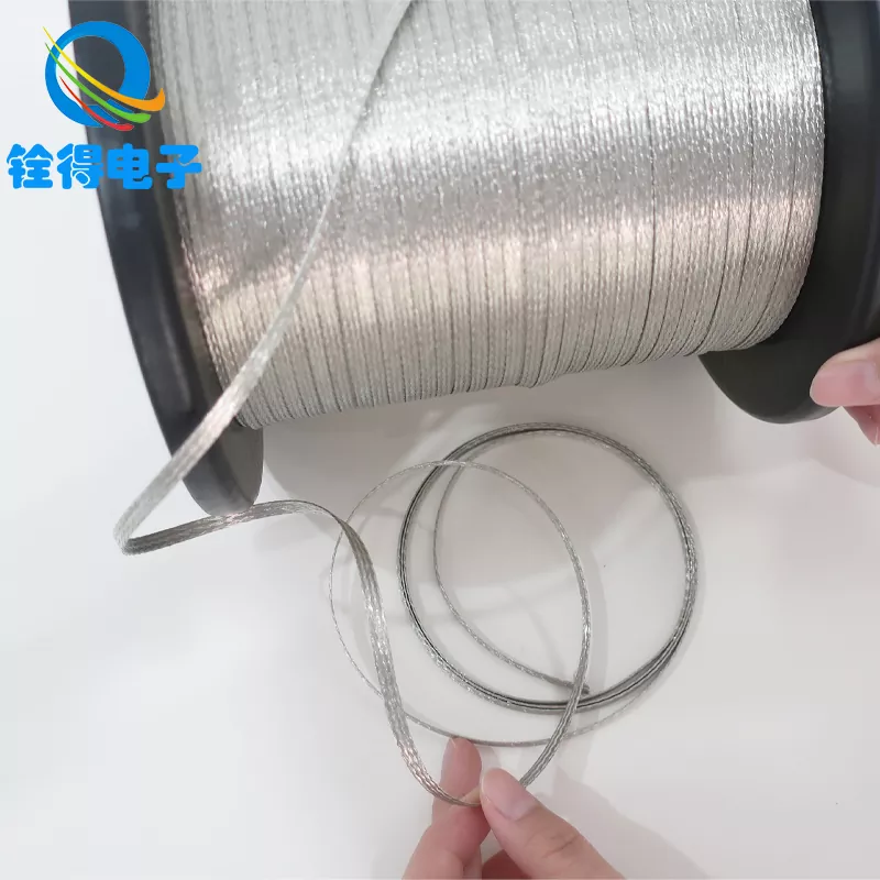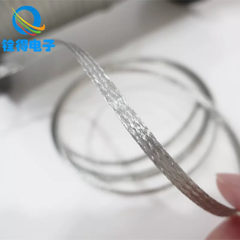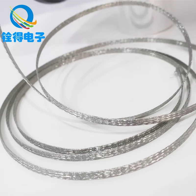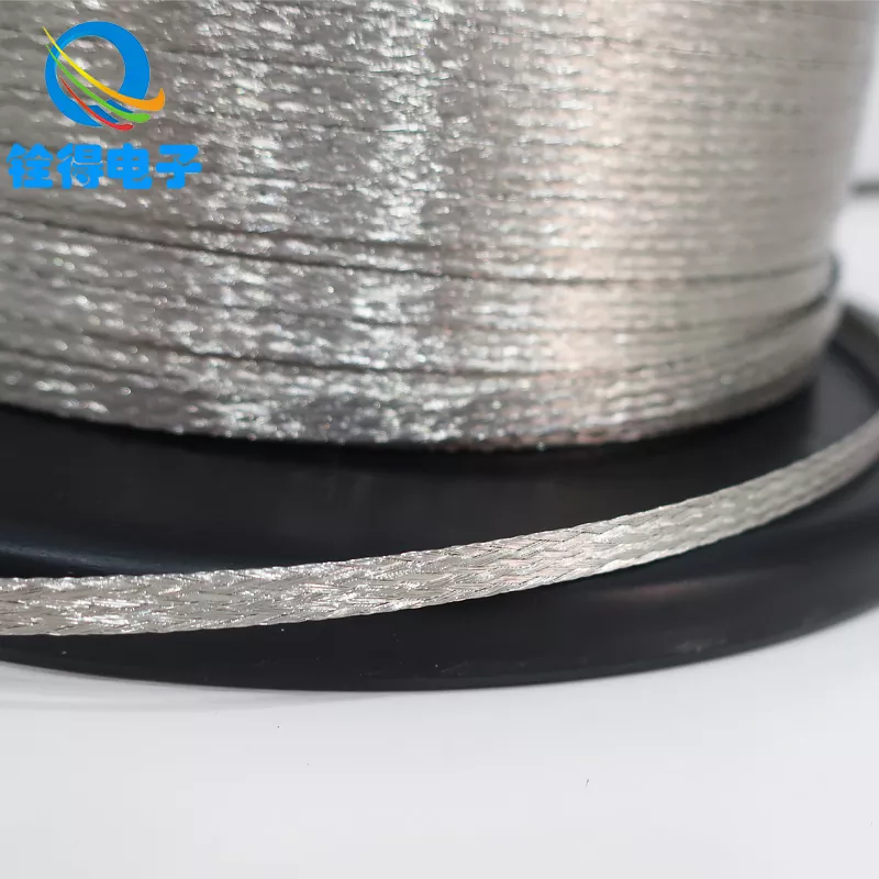 -Próiseas táirgthe: Ar an gcéad dul síos, ullmhaítear sreang alúmanaim cumhdaithe copair, ansin tarraingítear é ar an trastomhas sreinge cuí, agus ina dhiaidh sin fíodóireacht isteach i gcruth feadán mogalra ag baint úsáide as meaisín fíodóireachta, agus ar deireadh thiar faoi réir plating stáin chun friotaíocht creimthe agus friotaíocht ocsaídiúcháin a fheabhsú.
